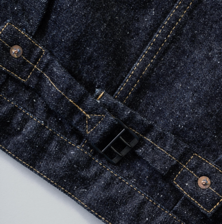 1941-1942に作られたデニムジャケットがベース。シルエットはドロップショルダー、太い袖、絞りの無い寸胴な身頃が特徴。T-BACK*ディテールを採用。運針や縫い方向などの縫製やディテールは、当時をベースにしつつも現代的な強度を加え、着丈やアームホールなどのシルエットについても現代的な微調整を加えた。これをNew Manual #001とする。 *背中がTの字にセパレートされた仕様。本来、生地1枚で取る後身頃をサイズが大きくなる対応として2枚の生地を背中心で接いだことによる。 <取り扱い注意> この製品はインディゴ染めの生地を使用してます。洗っていくごとに独特な色落ちが楽しめます。 取り扱いにつきましては取り扱い絵表示をご確認の上、次の点に十分ご注意下さい。 着用により他の衣類等に移染する事があります。摩擦によりベルトやバック等に移染する事があります。 下着等は同系色の物を着用する事をお勧めします。洗濯の際は色落ちしますので、単品で洗って下さい。 革部分について/洗濯(ベンジンを用いる場合を含む)は革が硬化する恐れがあります。 重ね置きをせずに温度及び湿度が低く、通気性が良いところに保存して下さい。汚れを落とす場合は、革製衣料用クリーナーをご使用下さい。アイロンは低温で布の上から掛け、蒸気アイロンは使用しないで下さい。 タック釦について/鉄製タック釦を使用しています。加工や経年によって錆が発生します。 衣類、バック等摩擦で錆が付着する可能性がありますのでご注意下さい。 なおこれら取り扱いにつきましては商品に付いている品質表示でもご確認頂けます。 ※加工によりダメージ具合やサイズ感に若干の個体差があります。 また製品の色味につきましては撮影場所やお使いのモニター環境により色味が違って見える場合があります。
