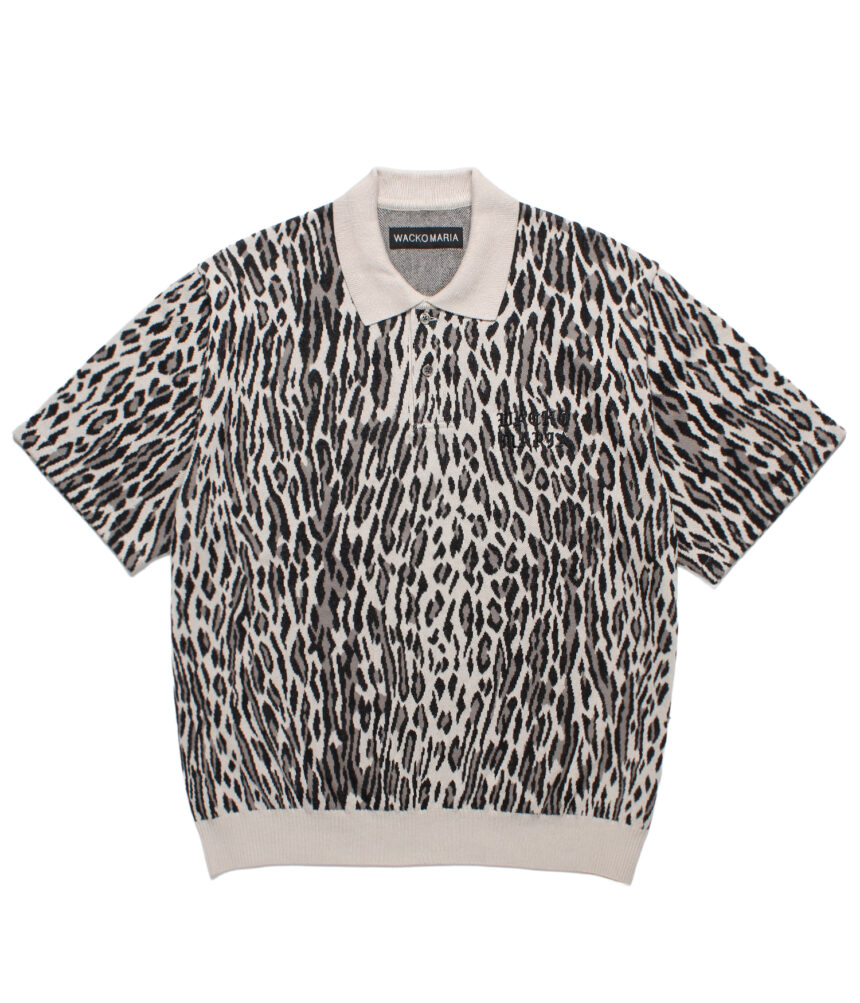 WACKO MARIA LEOPARD JACQUARD KNIT POLO SHIRT