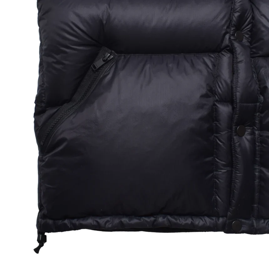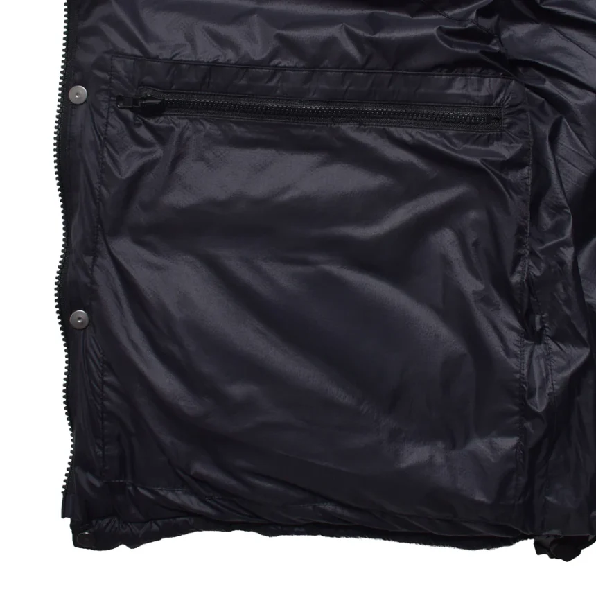 ナイロンリップストップを使用したダウンベスト、クラシックデザインをモダンな素材感とシルエットでアップデート。