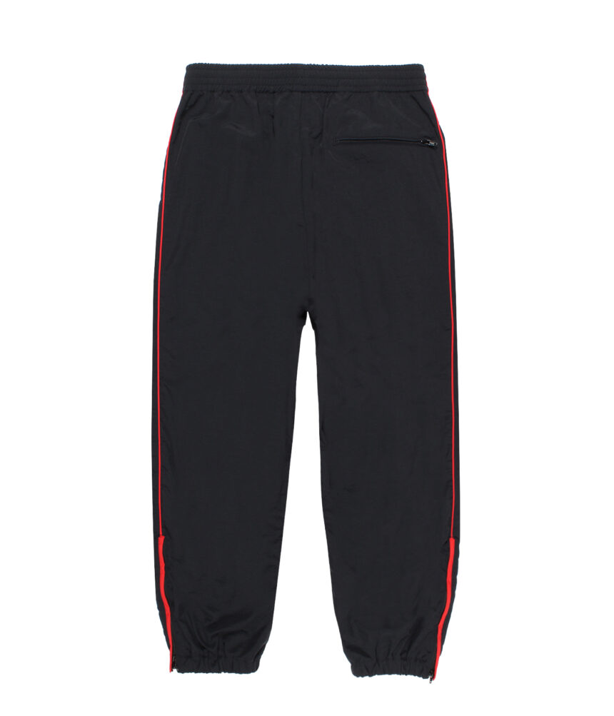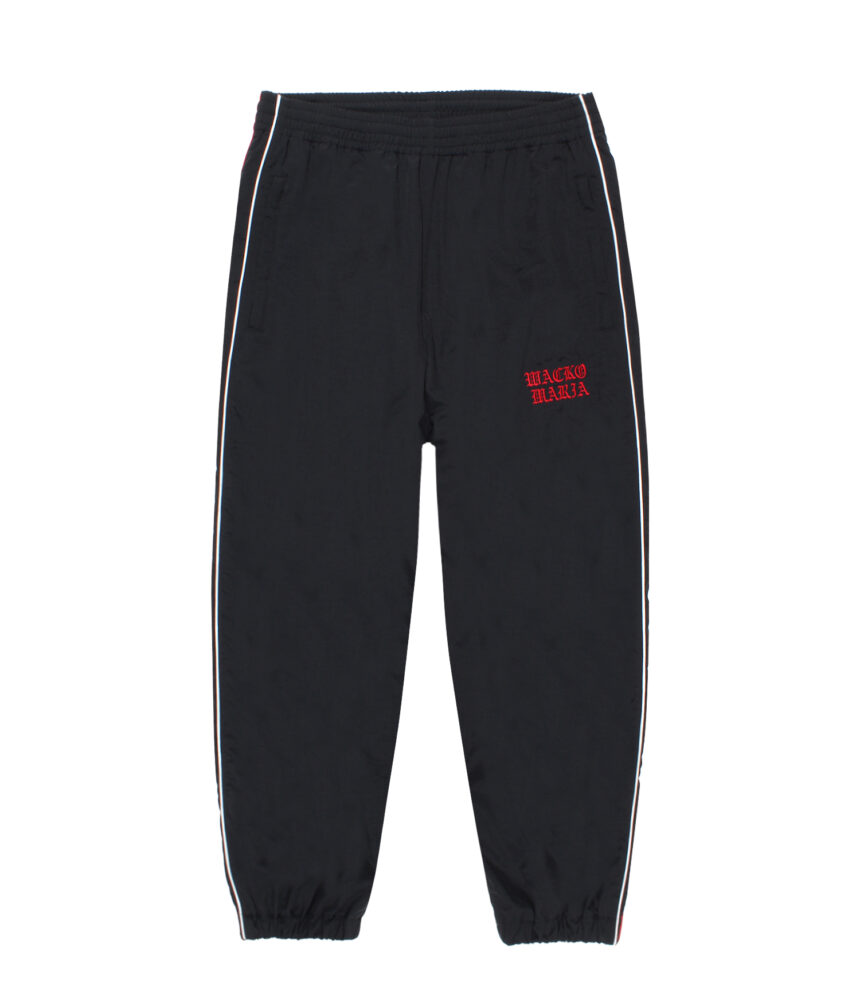 サイドにパイピング切り替えが入ったナイロン生地を使用したトラックパンツ。