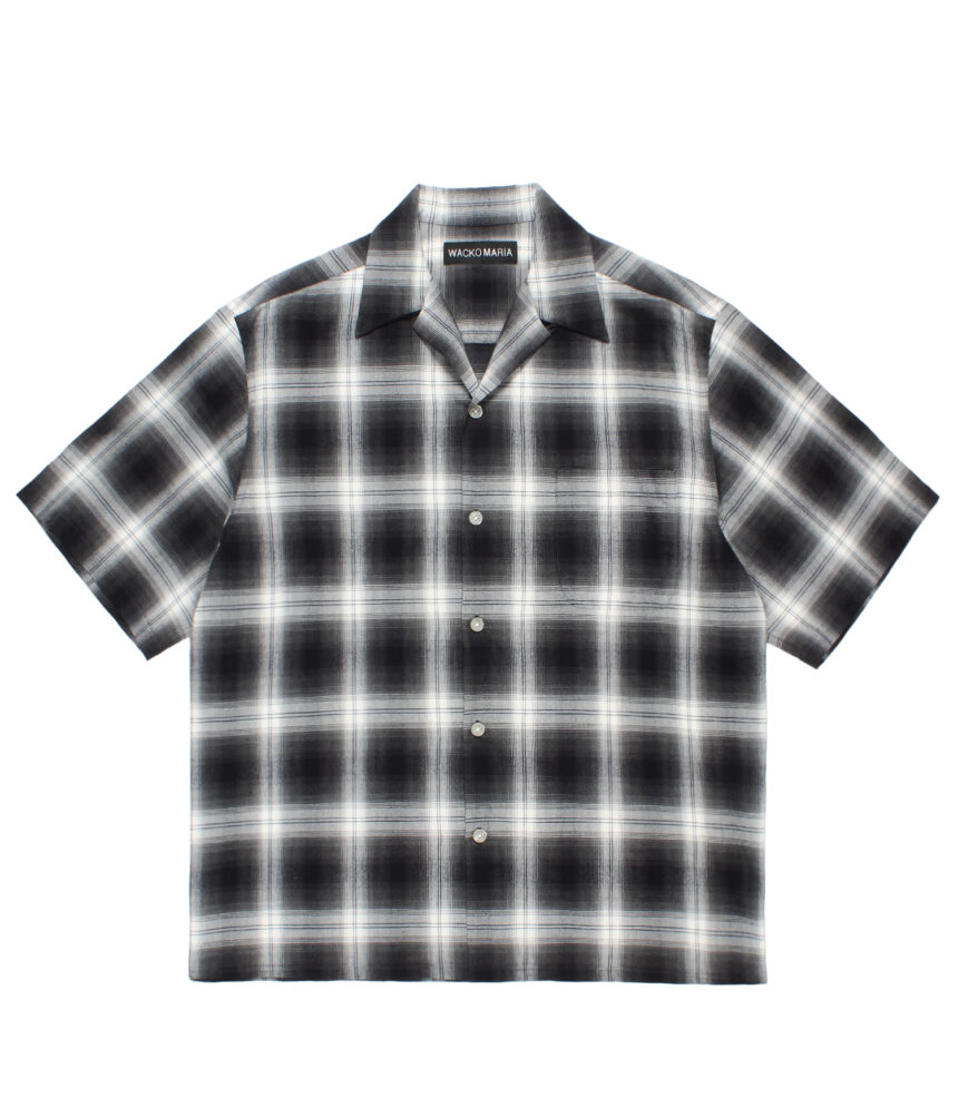 WACKO MARIA OMBRE CHECK OPEN COLLAR SHIRT