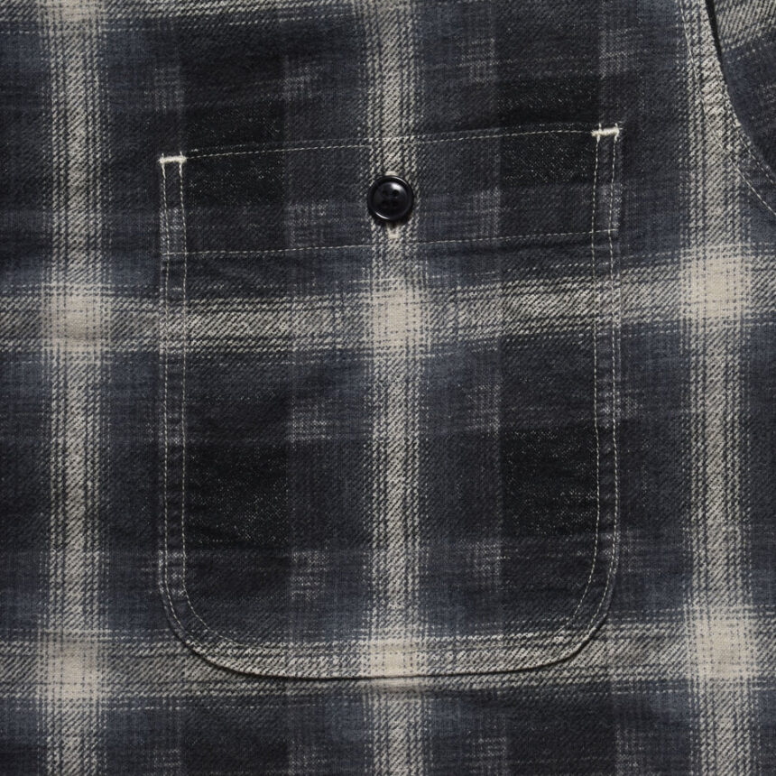 ゆるやかな肩の落ち具合とボックスシルエットで、胸ポケットを配したミニマルなデザインが特徴的。生地表面には独自の加工を加え、使い込んだような絶妙な風合いを演出。