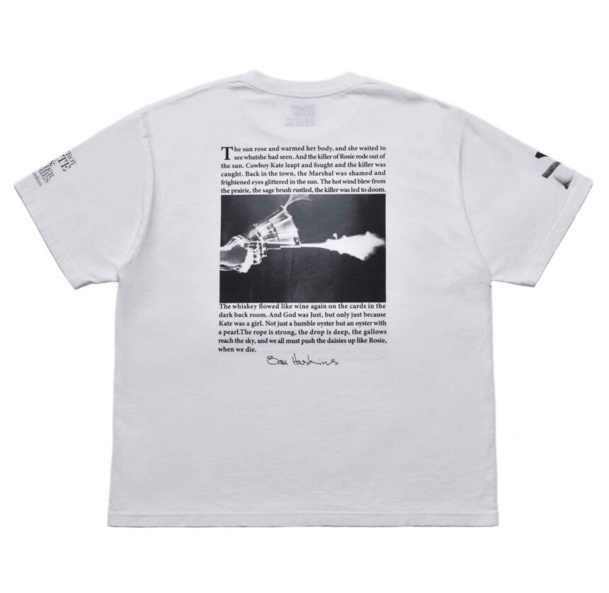 フロントには、『COWBOY KATE & OTHER STORIES』を象徴するKateの写真を使用、バックプリントには銃を発砲した瞬間を捉えた写真をそれぞれプリント。