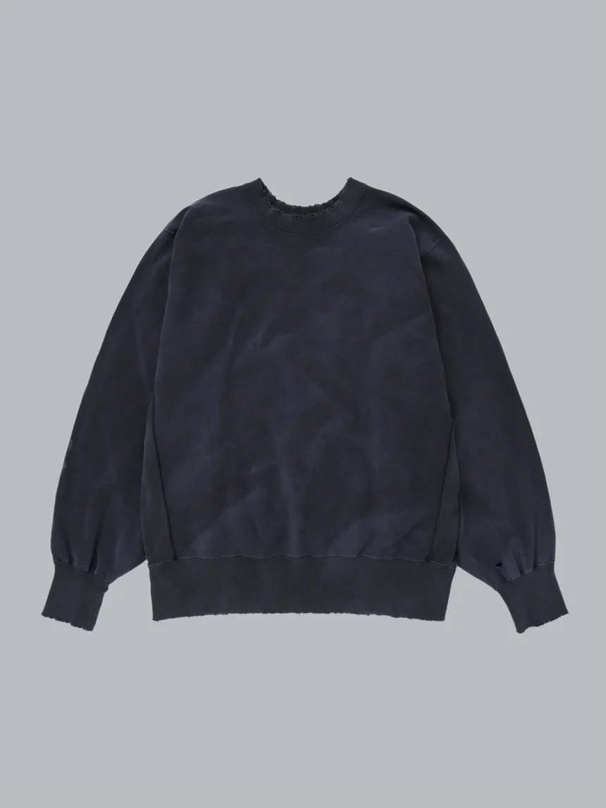 80sのヴィンテージリバースウィーブスウェットがベース。襟のダメージやフェードなどを再現。