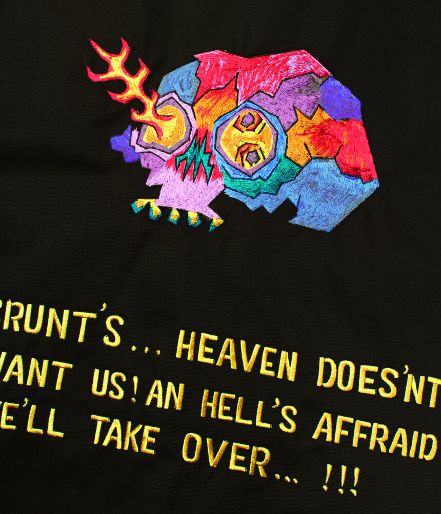 背中のデザインは刺繍になります。
